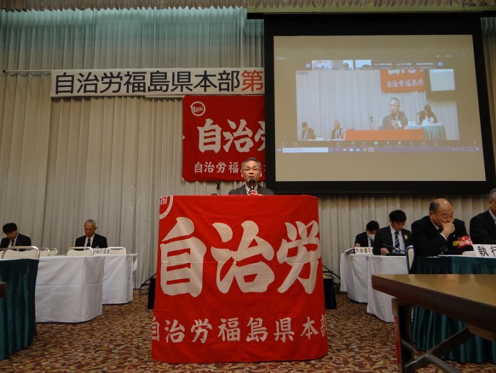 ▶2月6日(木)10:00~福島市「ホテル福島グリーンパレス」において、「県本部第116回臨時大会」を開催しました。今回は、大寒波襲来による天候悪化の状況を受け、対面とZoom併用での開催となりました。
